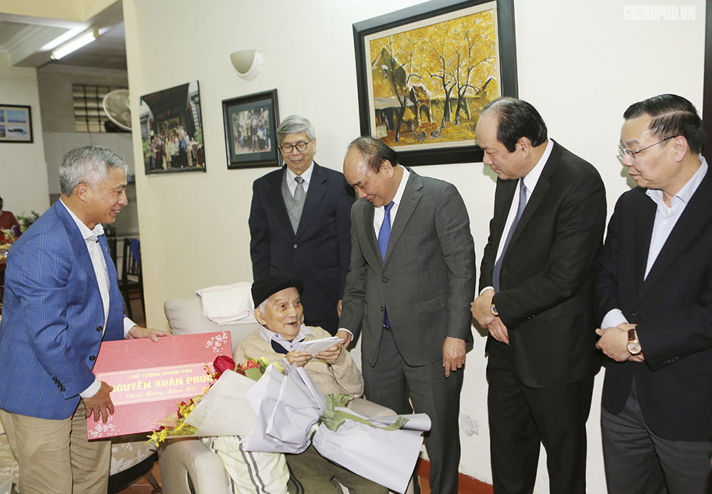 Thủ tướng đã tới thăm hỏi, chúc Tết Giáo sư, Viện sĩ Nguyễn Văn Hiệu, người có rất nhiều đóng góp cho sự đổi mới, phát triển của nền khoa học cách mạng Việt Nam. Giáo sư Nguyễn Văn Hiệu chia sẻ với Thủ tướng, tuy tuổi đã cao nhưng ông vẫn đang nghiên cứu và hoàn thiện một đề án liên quan đến vấn đề chống ngập, dài khoảng 1 nghìn trang để đóng góp cho Bộ Khoa học và Công nghệ.