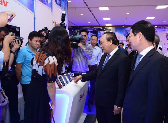 Thủ tướng Nguyễn Xuân Phúc, Bộ trưởng Bộ TT&TT Nguyễn Mạnh Hùng và các đại biểu thăm Triển lãm trưng bày một số sản phẩm, giải pháp công nghệ của các doanh nghiệp |