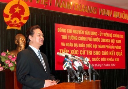 Trả lời các cử tri Bùi Văn Ngọc (phường Minh Khai), Vũ Thiện Bản (phường Thượng Lý) về vấn đề đất đai, lợi ích nhóm ngành ngân hàng, tình hình quản lý lao động nước ngoài như ở vùng Tây Nguyên có nhiều lao động phổ thông Trung Quốc..., Thủ tướng Nguyễn Tấn Dũng khẳng định Chính phủ sẽ tiếp tục rà soát để đảm bảo mở cửa kinh tế nhưng phải chặt chẽ để bảo vệ quốc phòng an ninh.