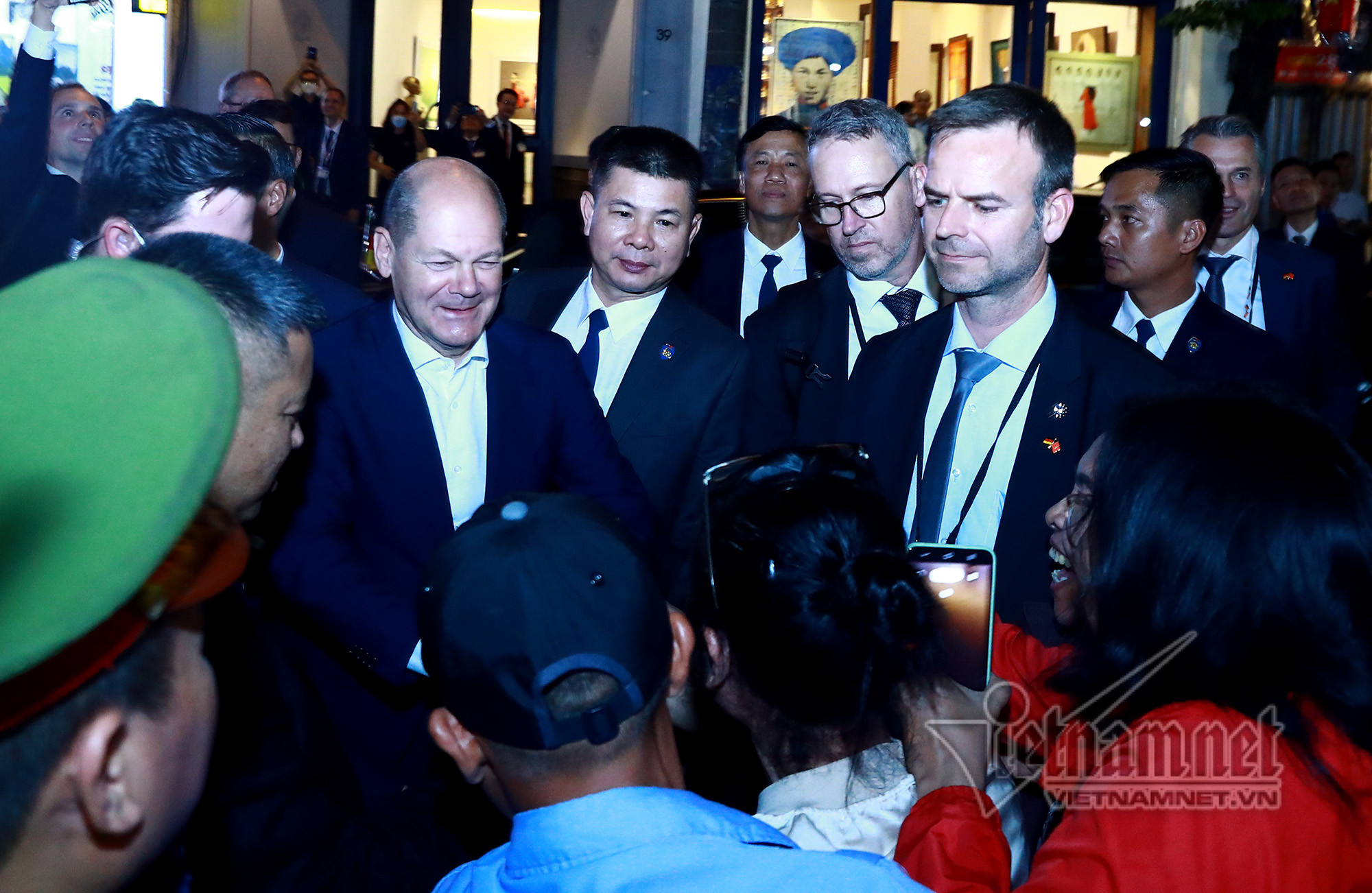 Tiếp tục chuyến thăm phố phường thủ đô, Thủ tướng Olaf Scholz đã có những phút thư thái khi đi dạo từ phố Hàng Gai qua quảng trường Đông Kinh Nghĩa Thục đến dọc tuyến phố Đinh Tiên Hoàng. Nhiều người dân Hà Nội nhận ra ông đã vẫy tay chào, đáp lại Thủ tướng Đức cũng vẫy tay và cười tươi.