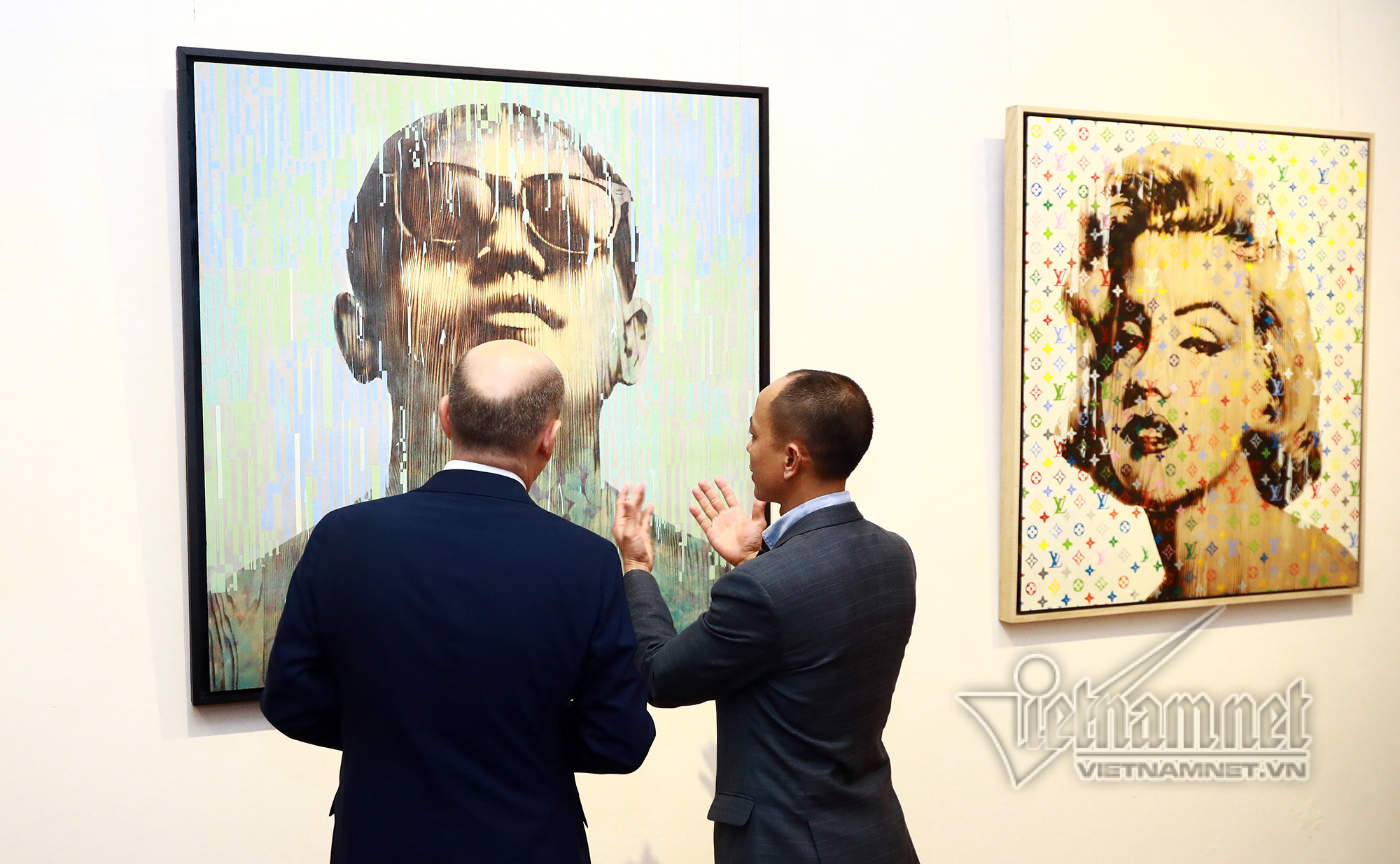 Thủ tướng Olaf Scholz bày tỏ sự ấn tượng trước loại hình nghệ thuật vô cùng mới lạ này. Dừng chân tại bức tranh cầu Long Biên, Thủ tướng Đức thích thú chạm vào chất liệu tranh và muốn tìm hiểu kỹ về bức tranh này.