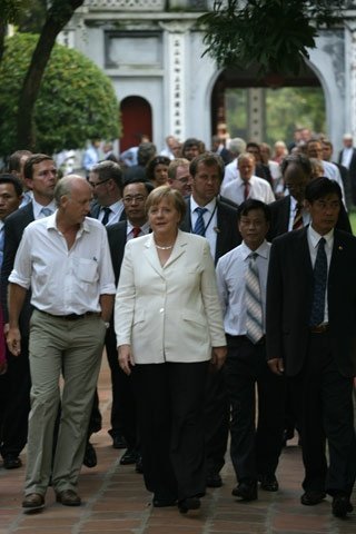 Có lẽ, thăm Văn Miếu - Quốc Tử Giám là sự hữu ý. Trong bản Tuyên bố chung: Việt Nam - Đức: đối tác chiến lược vì tương lai mà bà Thủ tướng ký kết với Thủ tướng Nguyễn Tấn Dũng sáng nay, văn hóa, giáo dục là hai trong những lĩnh vực hợp tác chiến lược giữa hai nước thời gian tới. Hai bên đã nhất trí thực hiện các dự án hợp tác trong lĩnh vực bảo tồn và bảo tàng di sản văn hóa, du lịch, thể thao, điện ảnh.