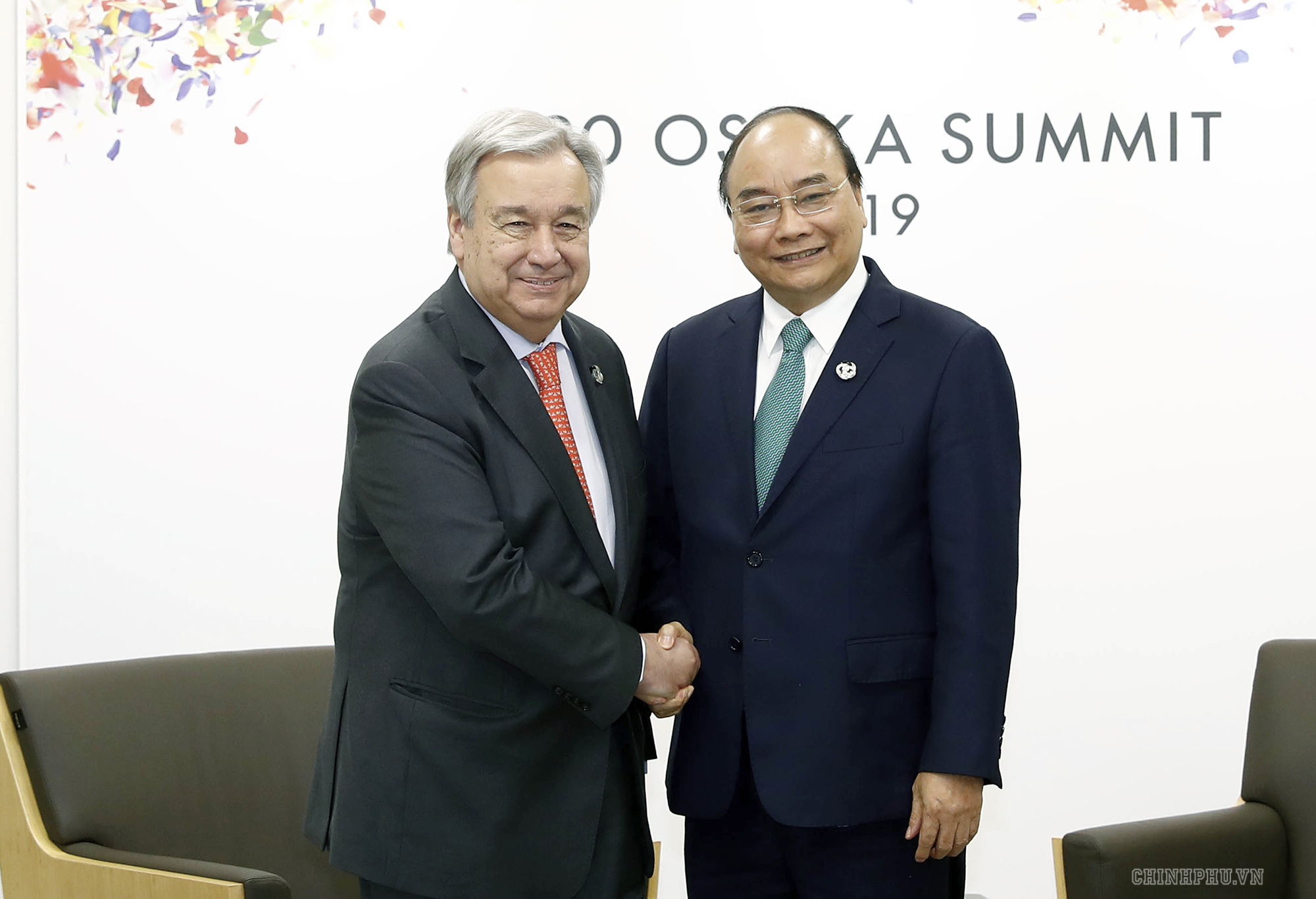 Tiếp tục chuyến tham dự Hội nghị cấp cao Nhóm các nền kinh tế phát triển và mới nổi hàng đầu thế giới (G20) và thăm Nhật Bản, hôm nay, tại Osaka, Nhật Bản, Thủ tướng Nguyễn Xuân Phúc đã tiếp, gặp gỡ: Chủ tịch Ngân hàng phát triển châu Á (ADB), Thủ tướng Australia, Tổng Thư ký Liên Hợp Quốc, Tổng Giám đốc Quỹ tiền tệ quốc tế, Tổng thống Nga, lãnh đạo Tập đoàn Merubeni, Tập đoàn JXTG Sugimori.