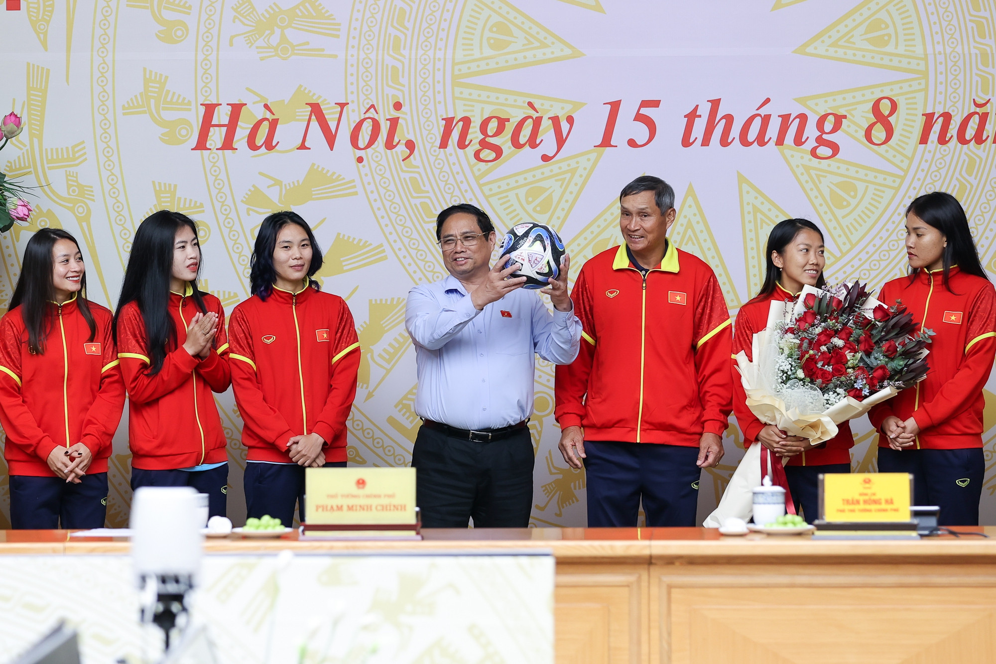 Ôn lại những thành tích của Đội tuyển bóng đá nữ Quốc gia Việt Nam như là Đội vô địch SEA Games nhiều nhất, với 8 lần vô địch SEA Games, vào đến tứ kết tại Đại hội thể thao Châu Á và vòng loại cuối cùng của Olympic 2020 và vừa qua là vào Vòng chung kết World Cup nữ 2023, Thủ tướng cho rằng, đây là cột mốc quan trọng, đánh dấu sự phát triển vượt bậc và ghi danh bóng đá nữ Việt Nam vào danh sách các đội bóng xuất sắc nhất thế giới.