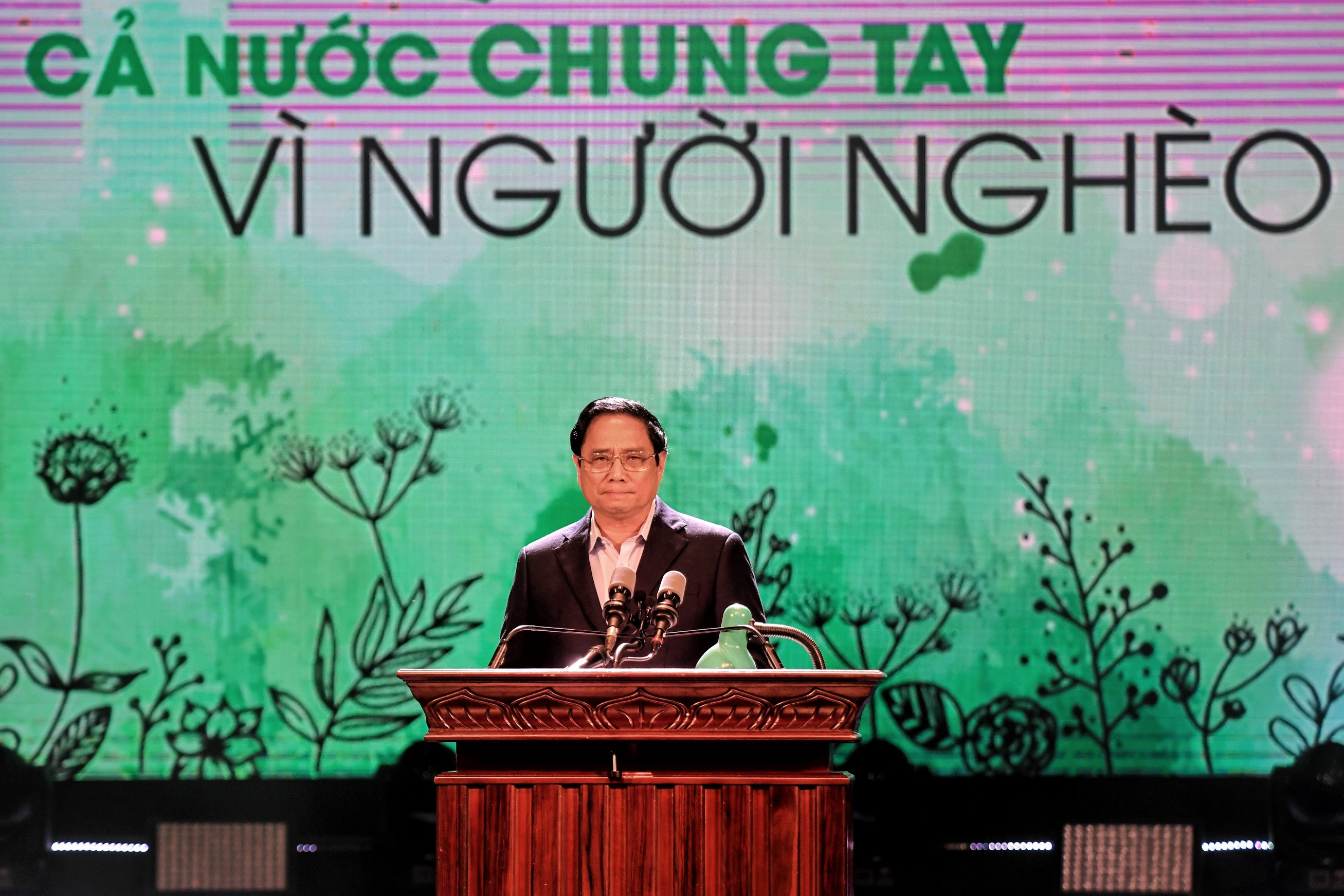 “Chung tay vì người nghèo - không để ai bị bỏ lại phía sau không chỉ là khẩu hiệu mà là những hành động cụ thể, thiết thực. Chúng ta hãy ở bên cạnh, đặt mình vào hoàn cảnh của những người nghèo, của những số phận kém may mắn để giúp đỡ bằng tấm lòng, bằng trái tim, bằng sự thấu hiểu, bằng sự trân trọng và cảm thông”, Thủ tướng nghẹn ngào xúc động.