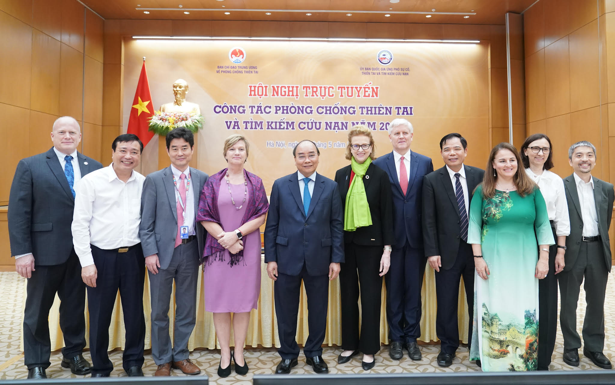 Nhân dịp này, Thủ tướng Nguyễn Xuân Phúc gửi lời cảm ơn đến các tổ chức quốc tế đã hỗ trợ Việt Nam cả về kinh phí và kinh nghiệm trong công tác phòng, chống thiên tai và mong muốn các tổ chức quốc tế tiếp tục hợp tác hiệu quả hơn nữa.
