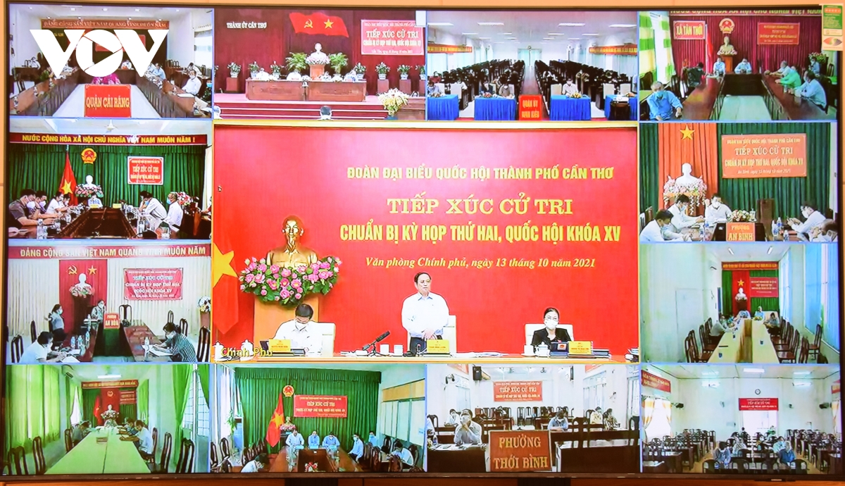 Sáng 13/10, Thủ tướng Chính phủ Phạm Minh Chính và các Đại biểu Quốc hội thuộc Đoàn Đại biểu Quốc hội thành phố Cần Thơ đã tiếp xúc cử tri thành phố Cần Thơ theo hình thức trực tuyến, chuẩn bị cho Kỳ họp thứ hai, Quốc hội khóa XV. Cuộc tiếp xúc cử tri được kết nối từ Văn phòng Chính phủ với các điểm cầu tại 74 xã, phường, thị trấn; 9 quận, huyện và trụ sở Thành ủy thành phố Cần Thơ.