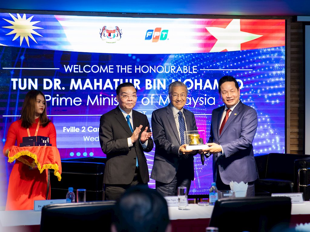Ông Trương Gia Bình, Chủ tịch Hội đồng Quản trị FPT cho biết, FPT rất vinh dự đón tiếp Thủ tướng Malaysia, người đã đưa Malaysia vào Top 25 quốc gia sẵn sàng nhất cho cách mạng công nghiệp 4.0 trên toàn cầu. Trong bối cảnh Việt Nam đang xây dựng Đề án Chuyển đổi số quốc gia, những chia sẻ của Thủ tướng Malaysia và kinh nghiệm chuyển đổi số thành công của quốc gia này là bài học quý cho Việt Nam. “Hơn 15 năm làm dự án công nghệ tại Malaysia giúp FPT có cơ hội tiếp thu kinh nghiệm để áp dụng cho Việt Nam. Chúng tôi sẽ học hỏi mô hình công viên sáng tạo Cyberjaya mà Thủ tướng Malaysia đã thiết lập để xây dựng Tổ hợp Giáo dục - Trí tuệ nhân tạo FPT tại Bình Định với mục tiêu nghiên cứu và đào tạo nguồn lực AI cho Việt Nam”, ông Bình cho biết thêm.