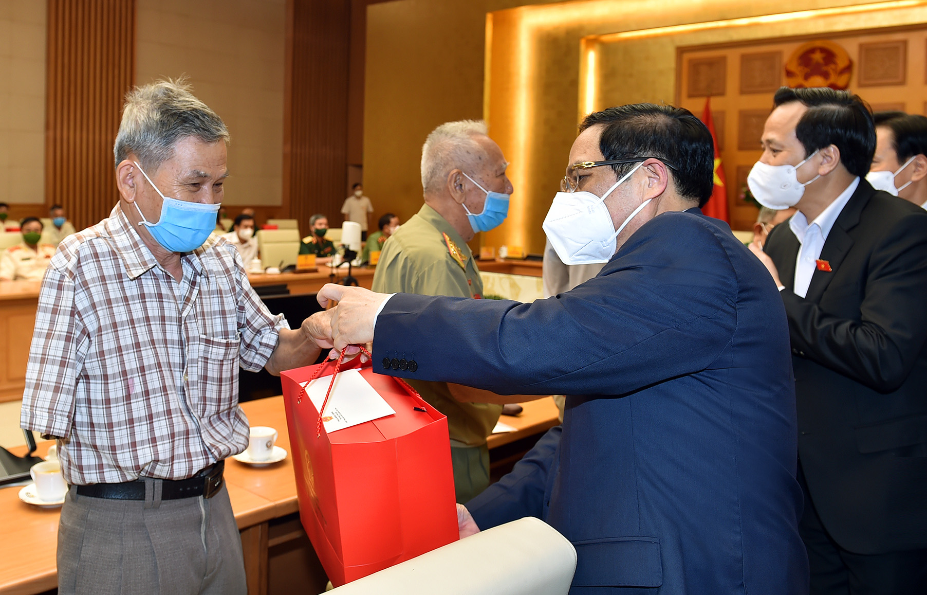 Ngay trước buổi gặp mặt, Thủ tướng Phạm Minh Chính đã ký ban hành Nghị định 75/2021/NĐ-CP quy định mức hưởng trợ cấp, phụ cấp và các chế độ ưu đãi người có công với cách mạng. Theo đó, các cơ chế, chính sách, mức ưu đãi với người có công được nâng cao hơn so với trước.