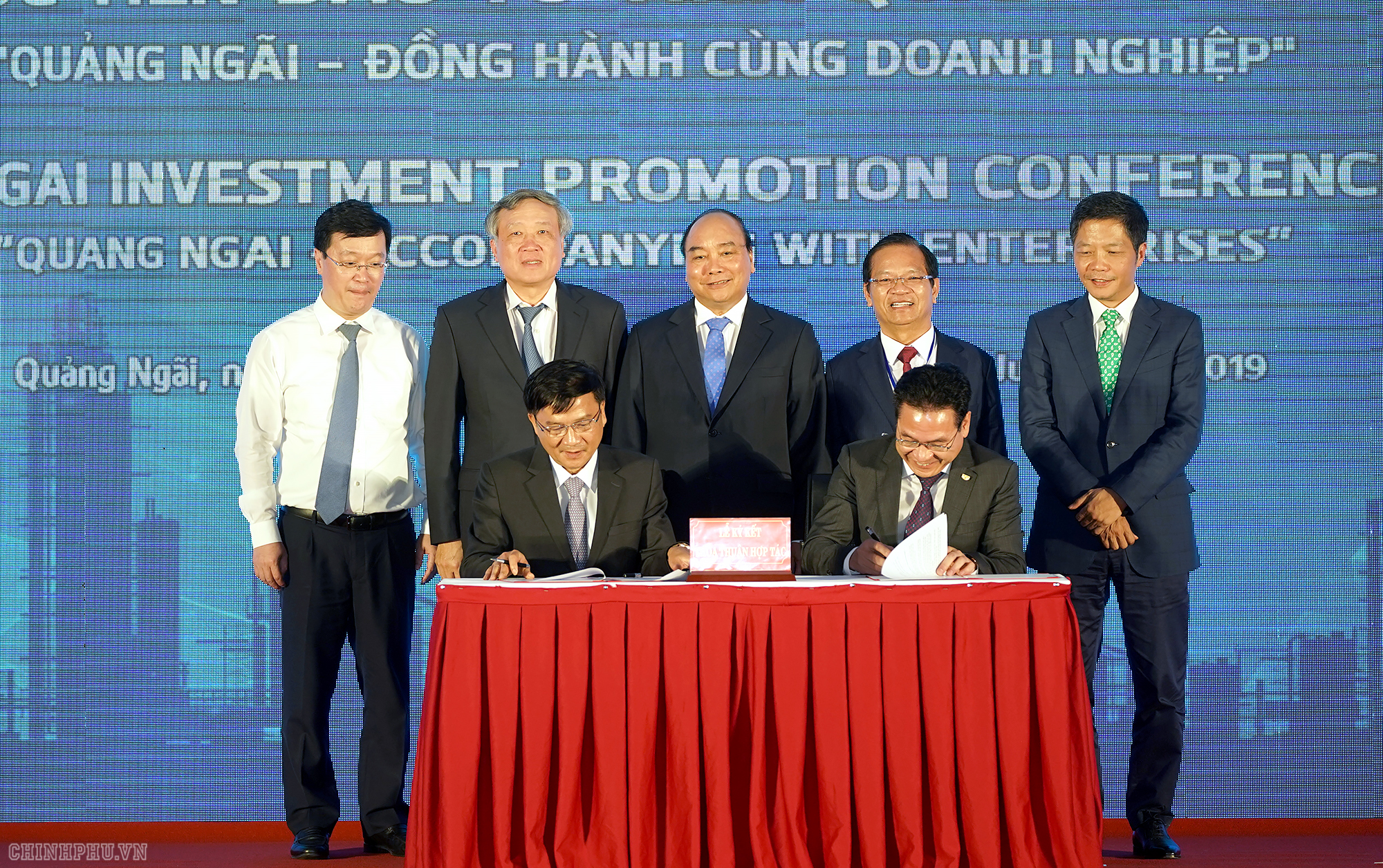 Tại Hội nghị, Thủ tướng đã chứng kiến tỉnh Quảng Ngãi trao giấy chứng nhận đăng ký đầu tư, quyết định chủ trương đầu tư cho 15 dự án với tổng vốn đầu tư 14.538 tỷ đồng, trao ghi nhận đầu tư cho 5 dự án với tổng vốn 3.640 tỷ đồng.