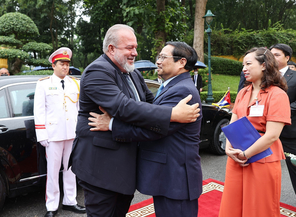 Sáng 29/9, tại Phủ Chủ tịch, Thủ tướng Phạm Minh Chính chủ trì lễ đón Thủ tướng Cuba Manuel Marrero Cruz và đoàn đại biểu cấp cao Chính phủ Cuba thăm hữu nghị chính thức Việt Nam.