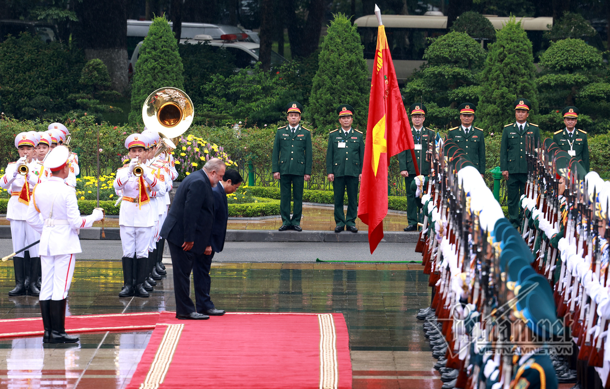 Sau đó, Thủ tướng Phạm Minh Chính mời Thủ tướng Cuba duyệt Đội danh dự Quân đội nhân dân Việt Nam.