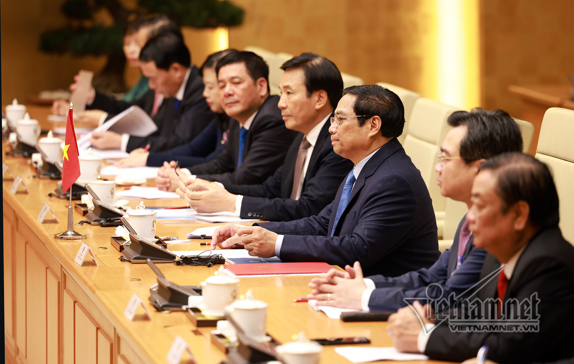 Ngay sau lễ đón chính thức, 2 Thủ tướng đã cùng di chuyển về trụ sở Văn phòng Chính phủ để tiến hành hội đàm.