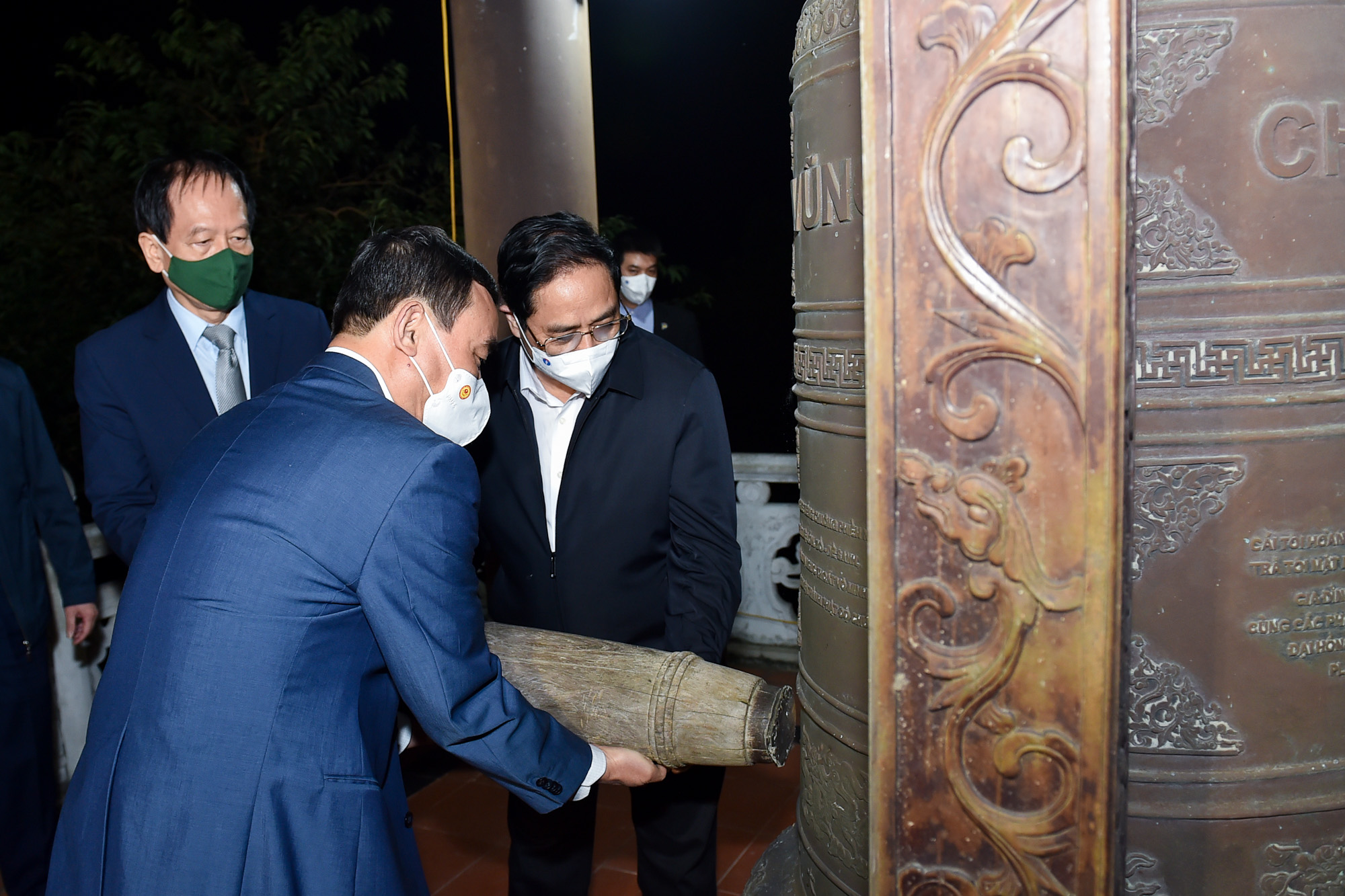 Thủ tướng Phạm Minh Chính thỉnh chuông tại nơi yên nghỉ của Đại tướng Võ Nguyên Giáp. Ảnh: VGP/Nhật Bắc |