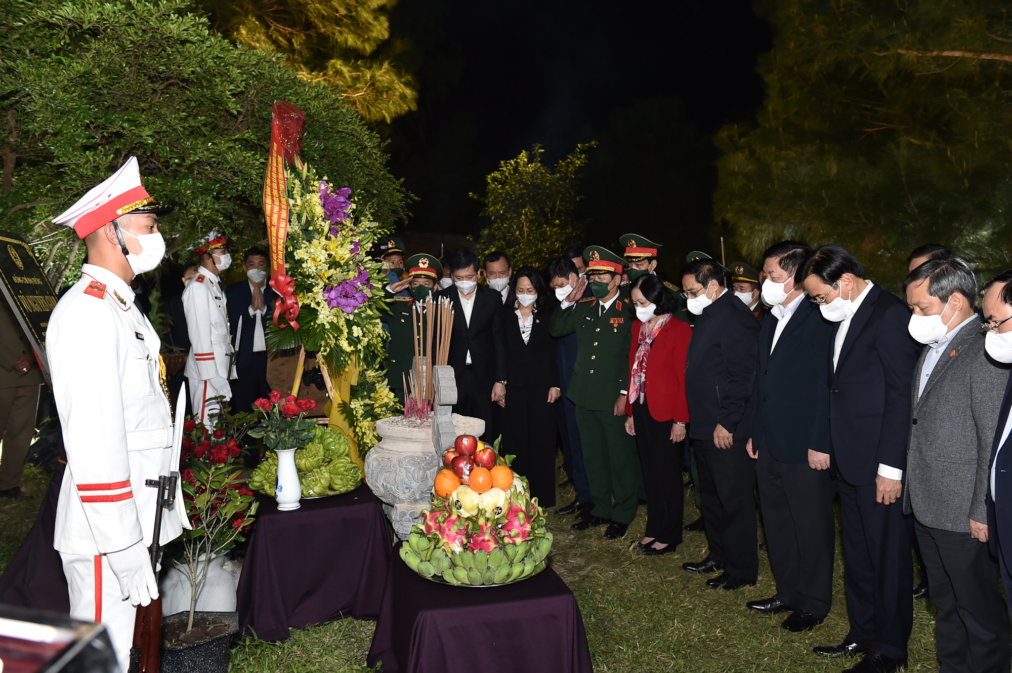 Trong không khí trang nghiêm, Thủ tướng Phạm Minh Chính cùng các đồng chí lãnh đạo đã đặt vòng hoa, dâng hương và dành phút mặc niệm, bày tỏ lòng thành kính trước anh linh của Đại tướng Võ Nguyên Giáp, cùng tri ân, tưởng nhớ công lao to lớn của Đại tướng đối với sự nghiệp cách mạng vẻ vang của Đảng và dân tộc ta.