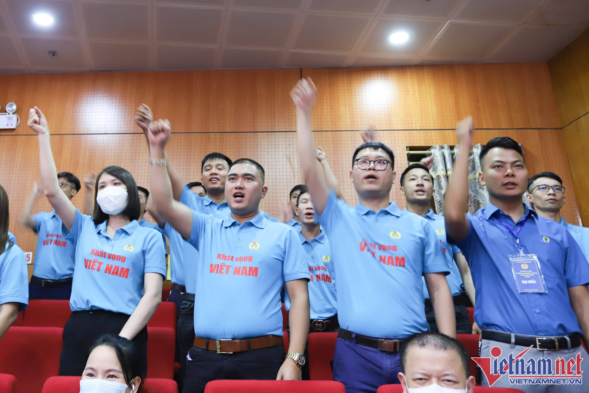 Tiếp đó, đại diện công nhân tại điểm cầu Bắc Giang thực hiện nghi thức tuyên thệ, thể hiện quyết tâm nỗ lực lao động, góp phần xây dựng Tổ quốc.