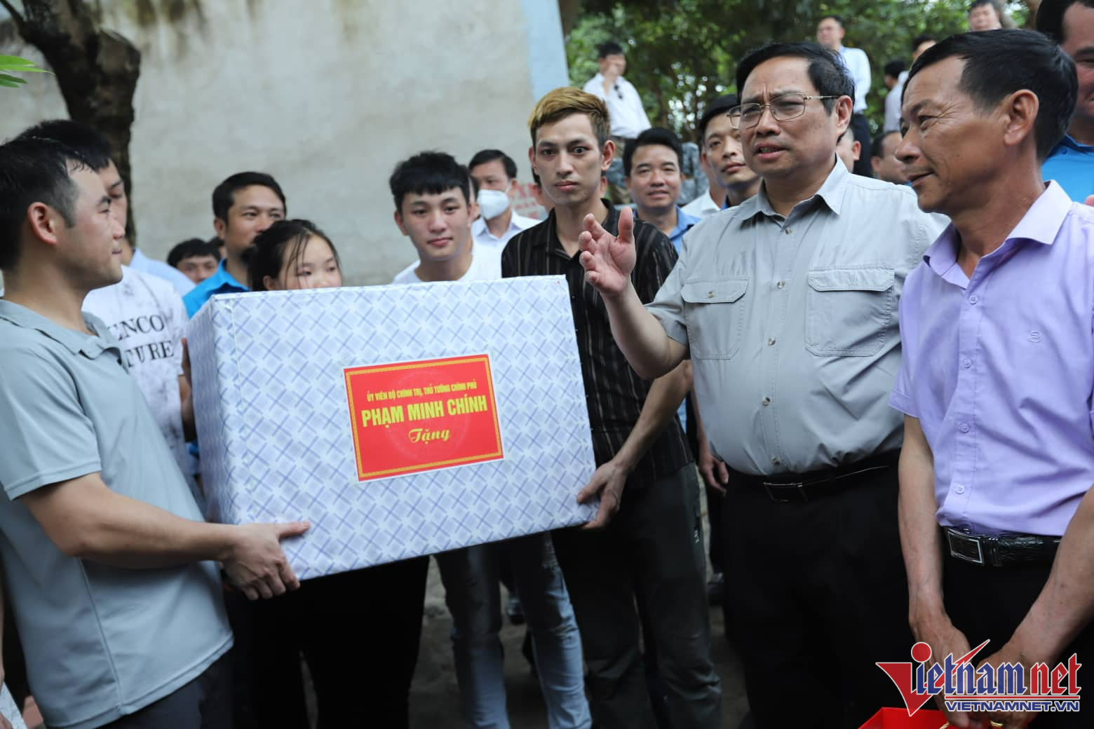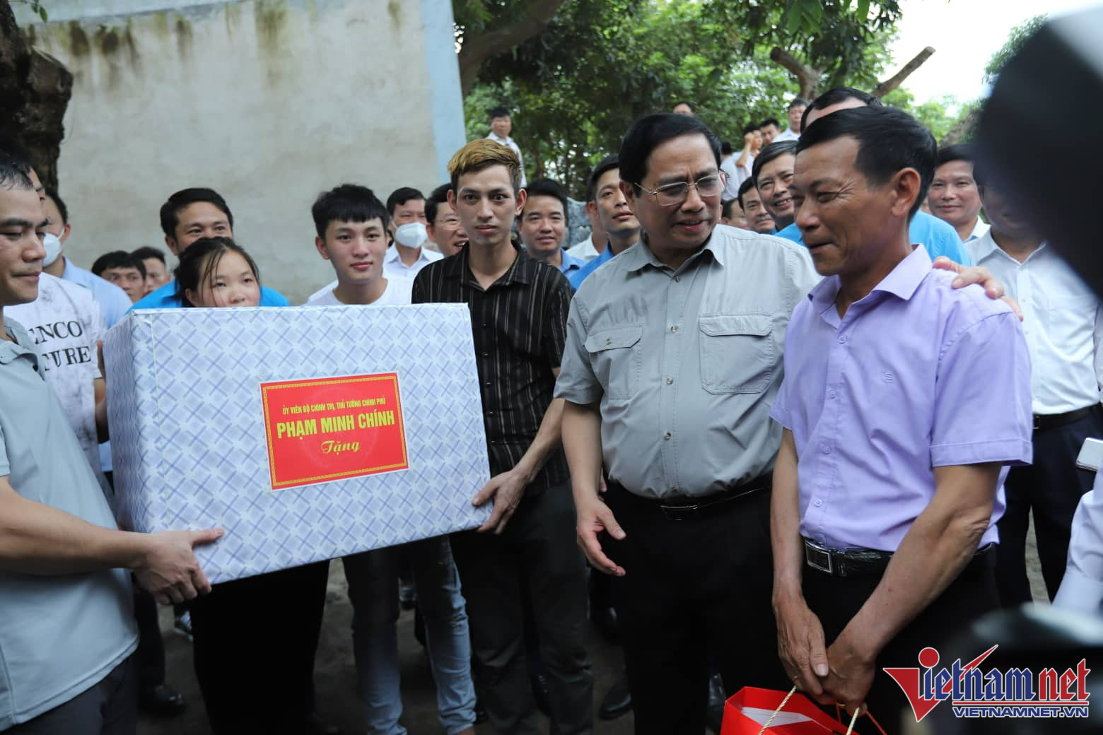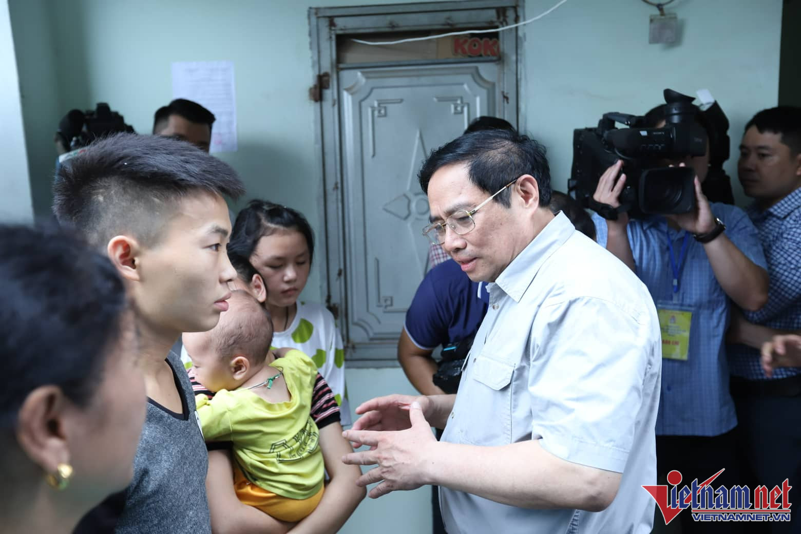 Đầu tiên, Thủ tướng đến thăm gia đình công nhân Sùng Mí Ná, sinh năm 2002, quê Hà Giang, đang làm việc tại Công ty TNHH in bao bì Sunny Việt Nam. Vợ chồng anh Sùng Mí Ná có 1 con nhỏ 7 tháng tuổi, hoàn cảnh khó khăn, bố mẹ mất sớm, còn bà nội 85 tuổi sống một mình ở quê. Gia đình công nhân Sùng Mí Ná đang ở trọ tại thôn An Định, xã Tiền Phong, huyện Yên Dũng, giáp TP. Bắc Giang.