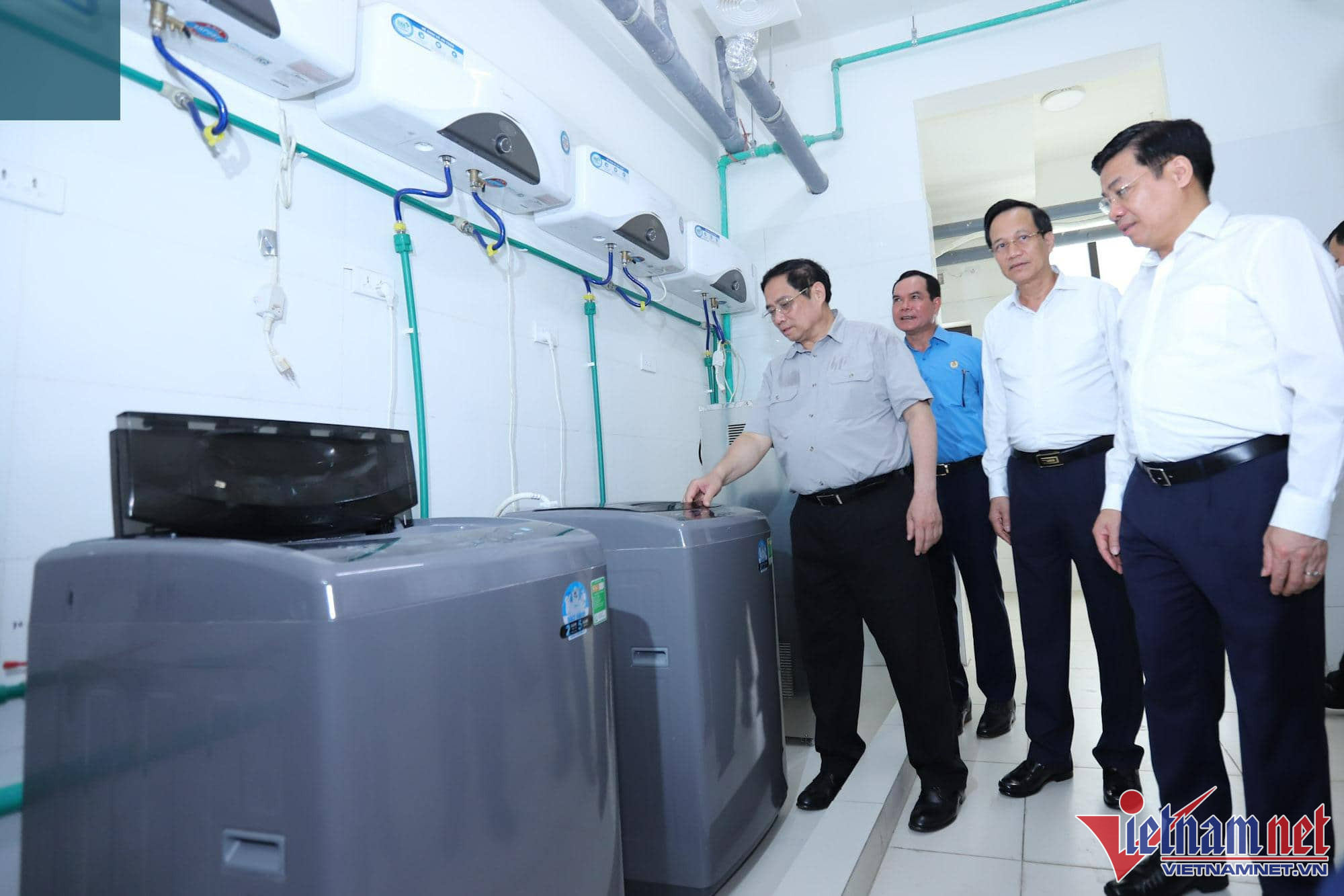 Tiếp đó, Thủ tướng đến thăm khu nhà ở xã hội dành cho công nhân của Công ty TNHH Fuji tại Khu công nghiệp Vân Trung, huyện Việt Yên. Tại đây, Thủ tướng nắm bắt tình hình đời sống của công nhân, nơi ăn ở, sinh hoạt và tặng quà chung cho công nhân đang ở trọ.
