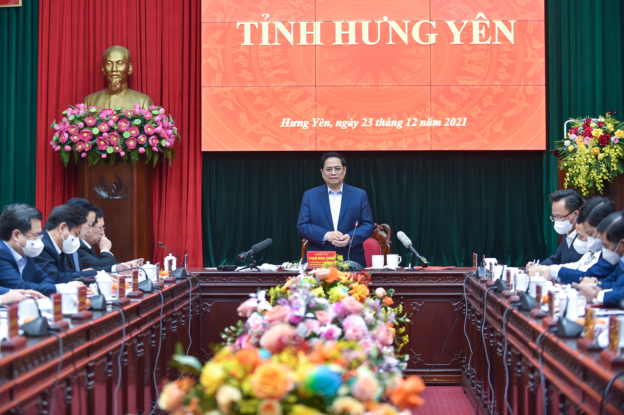 Phát biểu kết luận, cơ bản đồng tình với các báo cáo và ý kiến tại cuộc làm việc, Thủ tướng Phạm Minh Chính đánh giá cao và biểu dương nỗ lực của các cấp, các ngành, cộng đồng doanh nghiệp và nhân dân tỉnh Hưng Yên và kết quả tích cực phát triển kinh tế-xã hội trong năm 2021, các chỉ tiêu đều đạt và vượt.