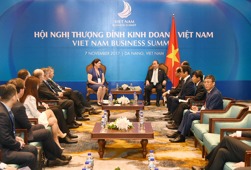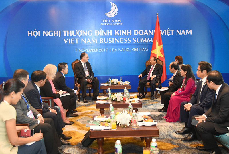 Chiều nay, tại Đà Nẵng, bên lề hội nghị Thượng đỉnh kinh doanh Việt Nam (VBS), Thủ tướng Nguyễn Xuân Phúc tiếp lãnh đạo các doanh nghiệp thuộc Liên minh Doanh nghiệp Hoa Kỳ APEC (NCAPEC) do bà Monica Whaley, Chủ tịch NCAPEC dẫn đầu; tiếp đoàn doanh nghiệp lớn của Trung Quốc, do ông Trần Châu, Phó chủ tịch UB Xúc tiến thương mại quốc tế Trung Quốc (CCPIT) dẫn đầu; tiếp lãnh đạo các tập đoàn Abbott, Exil Mobil, PwC.