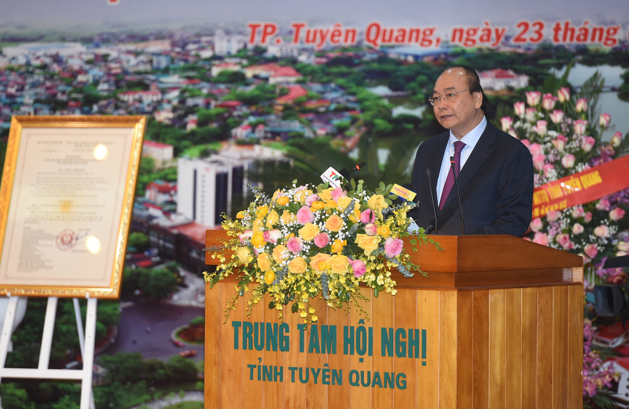 Phát biểu tại buổi lễ, Thủ tướng Nguyễn Xuân Phúc bày tỏ, trong buổi sáng mùa xuân, mùa khởi đầu cho một năm mới, mùa của hy vọng và tương lai, trong không khí vui tươi, phấn khởi mừng thành công rực rỡ Đại hội toàn quốc lần thứ XIII của Đảng, mừng Xuân Tân Sửu 2021, tại vùng đất giàu truyền thống cách mạng, Thủ đô khu Giải phóng, Thủ đô kháng chiến năm xưa, “tôi rất vui mừng cùng các đồng chí tự hào công bố quyết định của Thủ tướng Chính phủ công nhận thành phố Tuyên Quang là đô thị loại II trực thuộc tỉnh Tuyên Quang”.