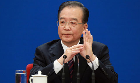 Thủ tướng Trung Quốc Ôn Gia Bảo trong cuộc họp báo sau khi kỳ họp thứ tư quốc hội khóa 11 bế mạc tại Bắc Kinh Ảnh: THX |