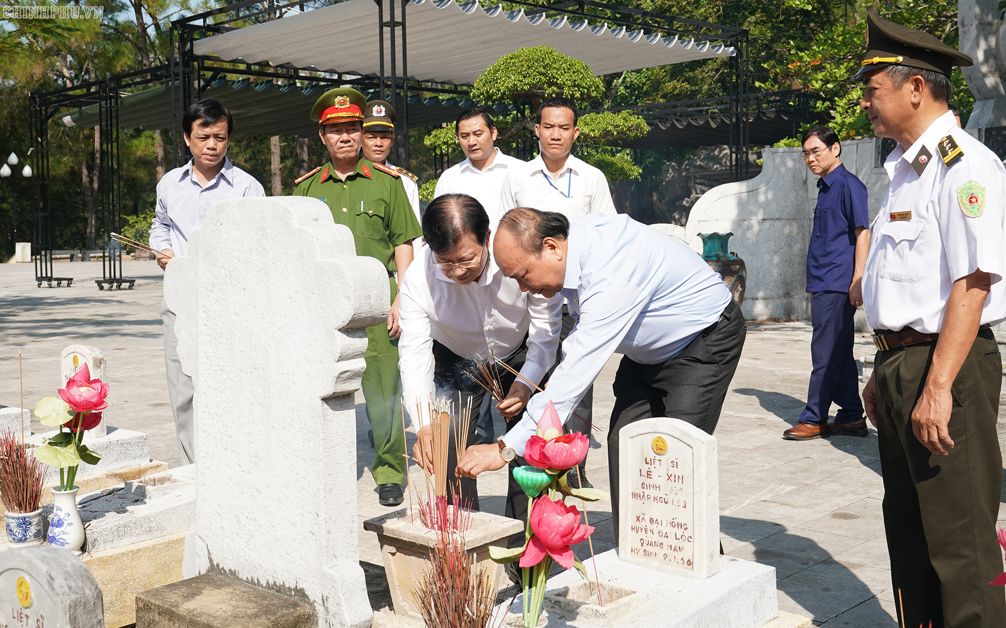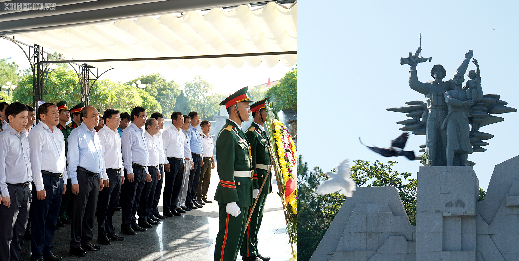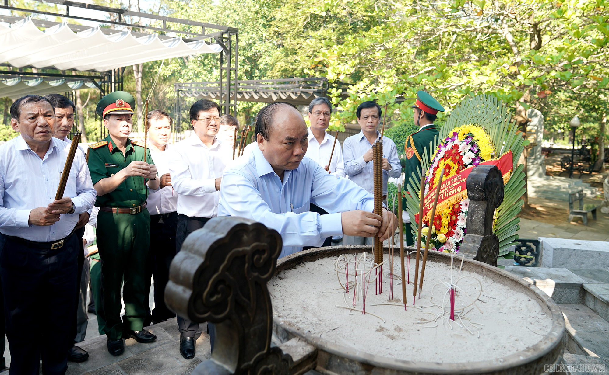 Thủ tướng và đoàn đã dâng hoa, dâng hương tưởng niệm các anh hùng liệt sĩ trong niềm xúc động, tri ân sâu sắc sự cống hiến, hy sinh lớn lao của các anh hùng liệt sĩ cho sự nghiệp giải phóng dân tộc, thống nhất đất nước.