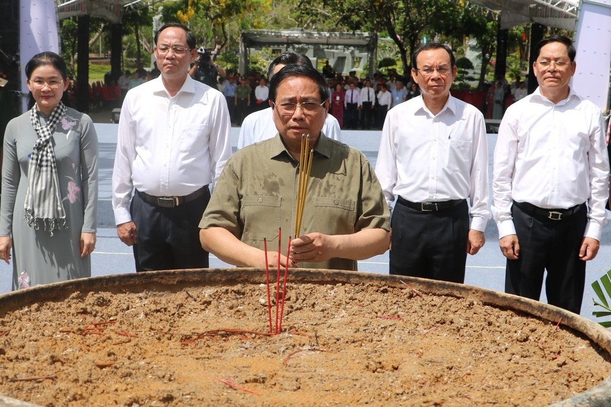 Tối cùng ngày, tại Nghĩa trang Hàng Dương, huyện Côn Đảo, Thủ tướng Phạm Minh Chính cùng các lãnh đạo đã thắp nến tri ân, tưởng nhớ các Anh hùng liệt sĩ và dự Chương trình nghệ thuật đặc biệt Côn Đảo - Hùng ca ý chí Việt Nam.