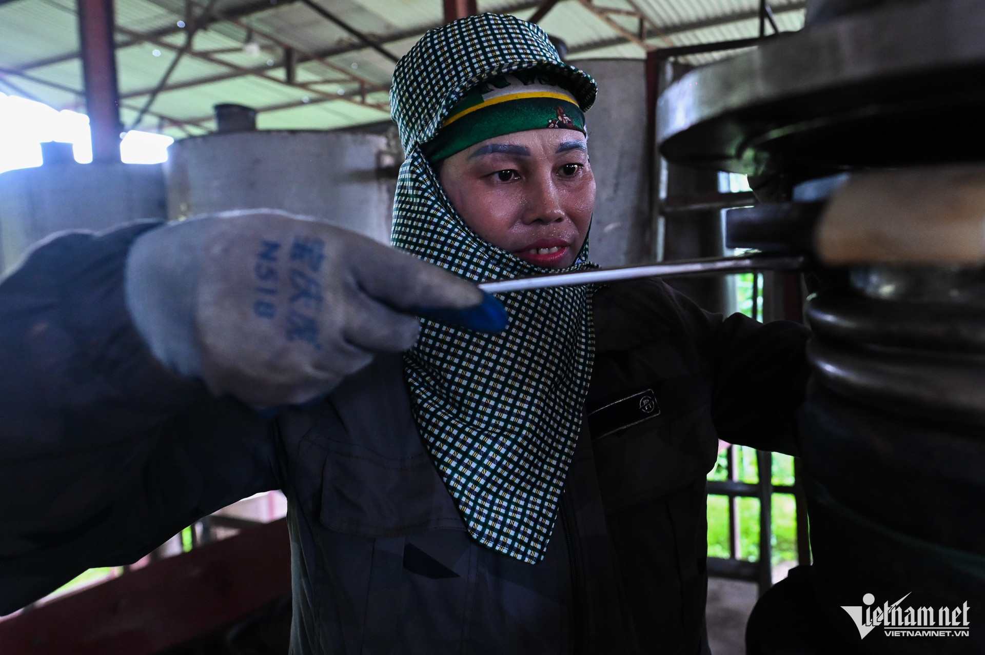 Tại xưởng quế, bà con sử dụng các máy móc công suất lớn hỗ trợ sản xuất, nâng cao sản lượng chế biến. Trung bình các xưởng chạy được 24 - 30 nồi chưng, thu về 200kg tinh dầu/ngày.