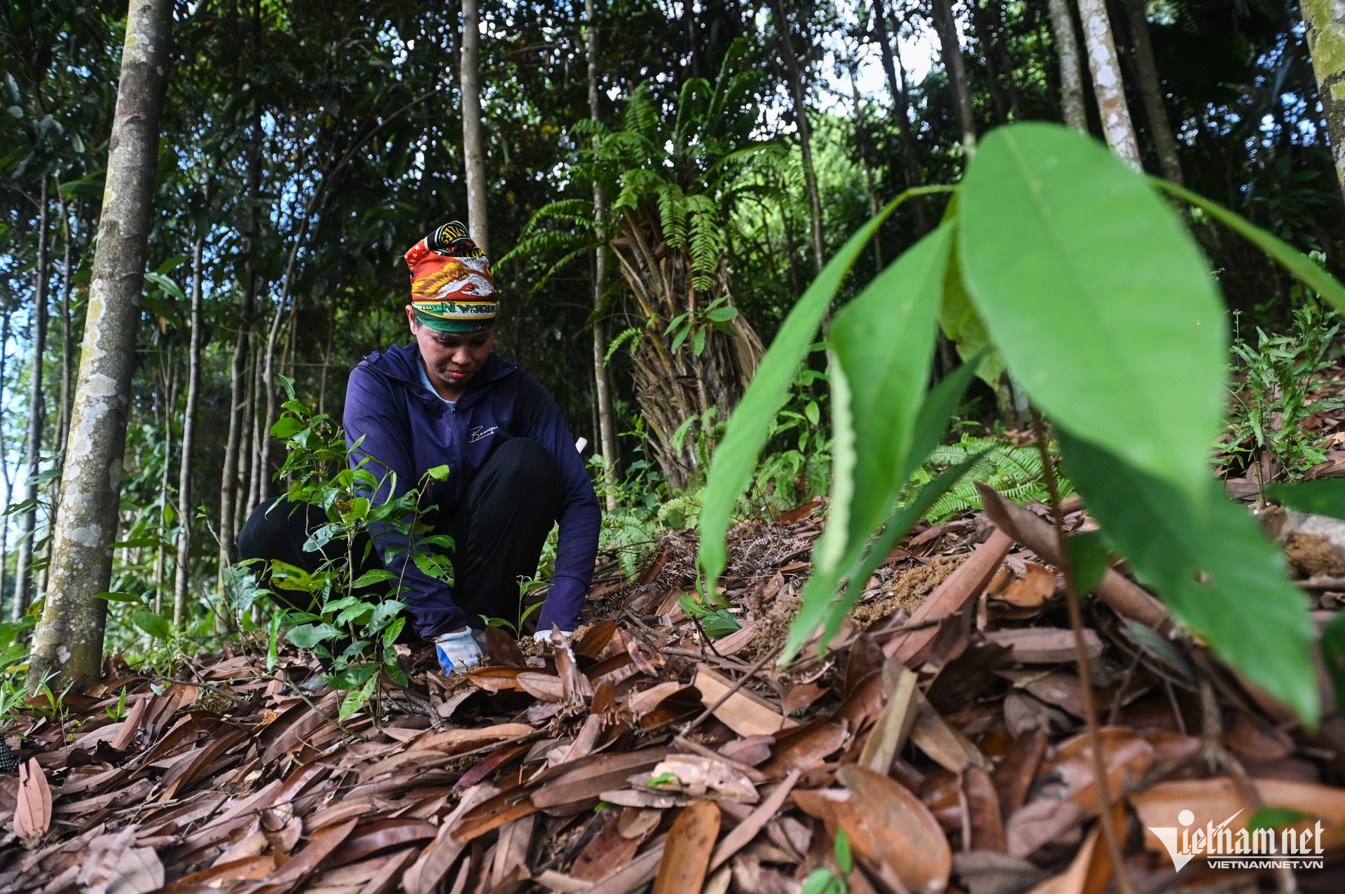Quế lâu năm có giá trị cao, vì vậy chỉ khi cần dùng đến tiền, chị Thêu mới đốn hạ. Hàng ngày, chị đi làm tại các xưởng quế trong vùng, thu nhập 200.000 - 300.000 đồng/ngày công.