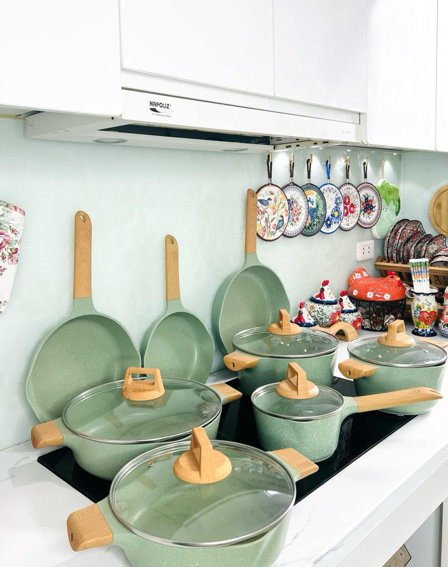 “Toàn bộ đồ bếp được thay thế. Những chiếc nồi màu sắc và những bộ bát hoa xinh xắn đã thay thế cho những món đồ tạm bợ, không đồng nhất. Cũng nhờ vậy mà mình vào bếp với một tinh thần khác hẳn – vui vẻ hơn, tích cực hơn.