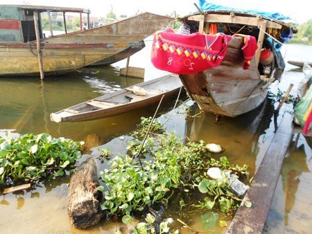 | Nguồn nước, môi trường sống tại xóm vạn đò Thủy Phú ngày càng bị ô nhiễm. |