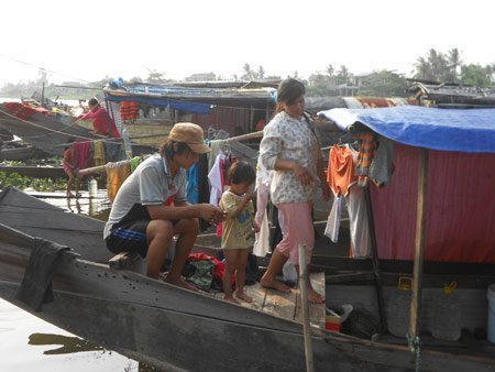| Nguy cơ trẻ bị té nước chết đuối luôn ám ảnh những gia đình có con nhỏ sống trên sông. |