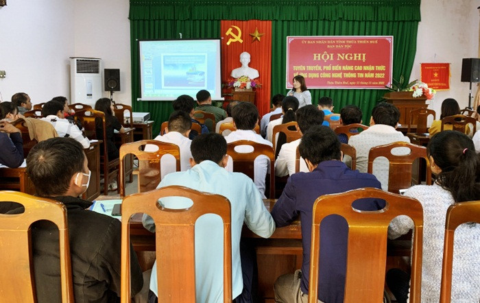 Theo đó, thực hiện kế hoạch của Ban Dân tộc về thực hiện Tiểu dự án 2, Dự án 10: Ứng dụng công nghệ thông tin hỗ trợ phát triển kinh tế - xã hội và đảm bảo an ninh trật tự vùng đồng bào dân tộc thiểu số và miền núi tỉnh năm 2022, Ban Dân tộc tỉnh Thừa Thiên Huế đã tổ chức hội nghị tuyên truyền, phổ biến nâng cao nhận thức về ứng dụng công nghệ thông tin hỗ trợ phát triển kinh tế - xã hội vùng đồng bào dân tộc thiếu số tỉnh năm 2022.