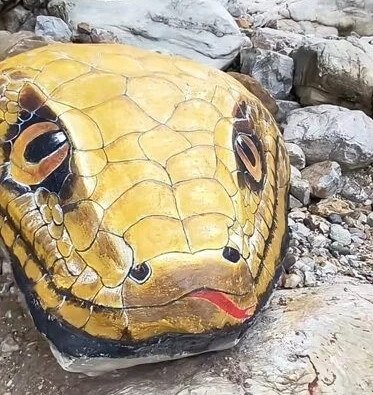 Tuy nhiên, ban quản lý khu danh thắng xác nhận, đây thực chất là một tảng đá được sơn vẽ hình đầu trăn nhằm tạo điểm nhấn cho du khách.