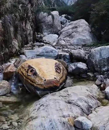 Mới đây, mạng xã hội Trung Quốc lan truyền hình ảnh "đầu trăn" khổng lồ xuất hiện giữa dòng suối trong khu thắng cảnh Ngọc Hoàng Câu trên núi Tùng Sơn (tỉnh Hà Nam).