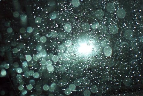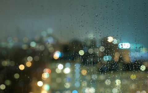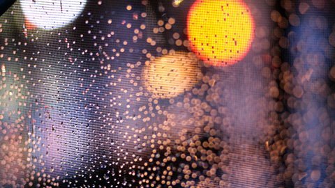 | Giọt nước bám trên kính và ánh đèn phía xa |