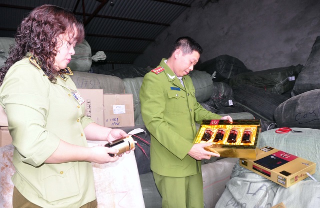 | Lực lượng quản lý thị trường số 4 kiểm tra thu giữ thực phẩm chức năng giả trên địa bàn Hà Nội. Ảnh: Lam Thanh |