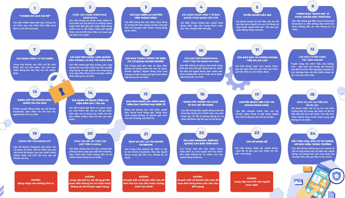 24 hình thức lừa đảo trực tuyến đang diễn ra trên không gian mạng Việt Nam và một số lưu ý để an toàn trên mạng, theo khuyến nghị của Cục An toàn thông tin, Bộ TT&TT.