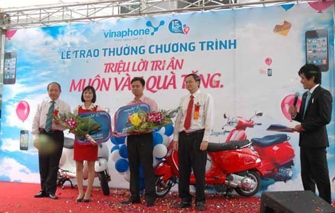 biệt nhân kỉ niệm 15 năm thành lập mạng VinaPhone, các thuê bao may mắn đã bày
