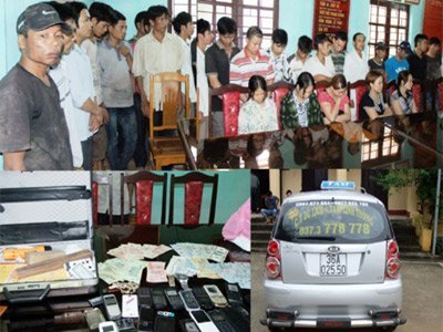 Cảnh sát đã bắt quả tang 22 đối tượng (gồm 5 nữ và 17 nam) đang đánh bạc dưới hình thức đánh xóc đĩa. Thu giữ tang vật gồm 22 triệu đồng tiền mặt, 17 xe máy các loại, 26 điện thoại di động...
