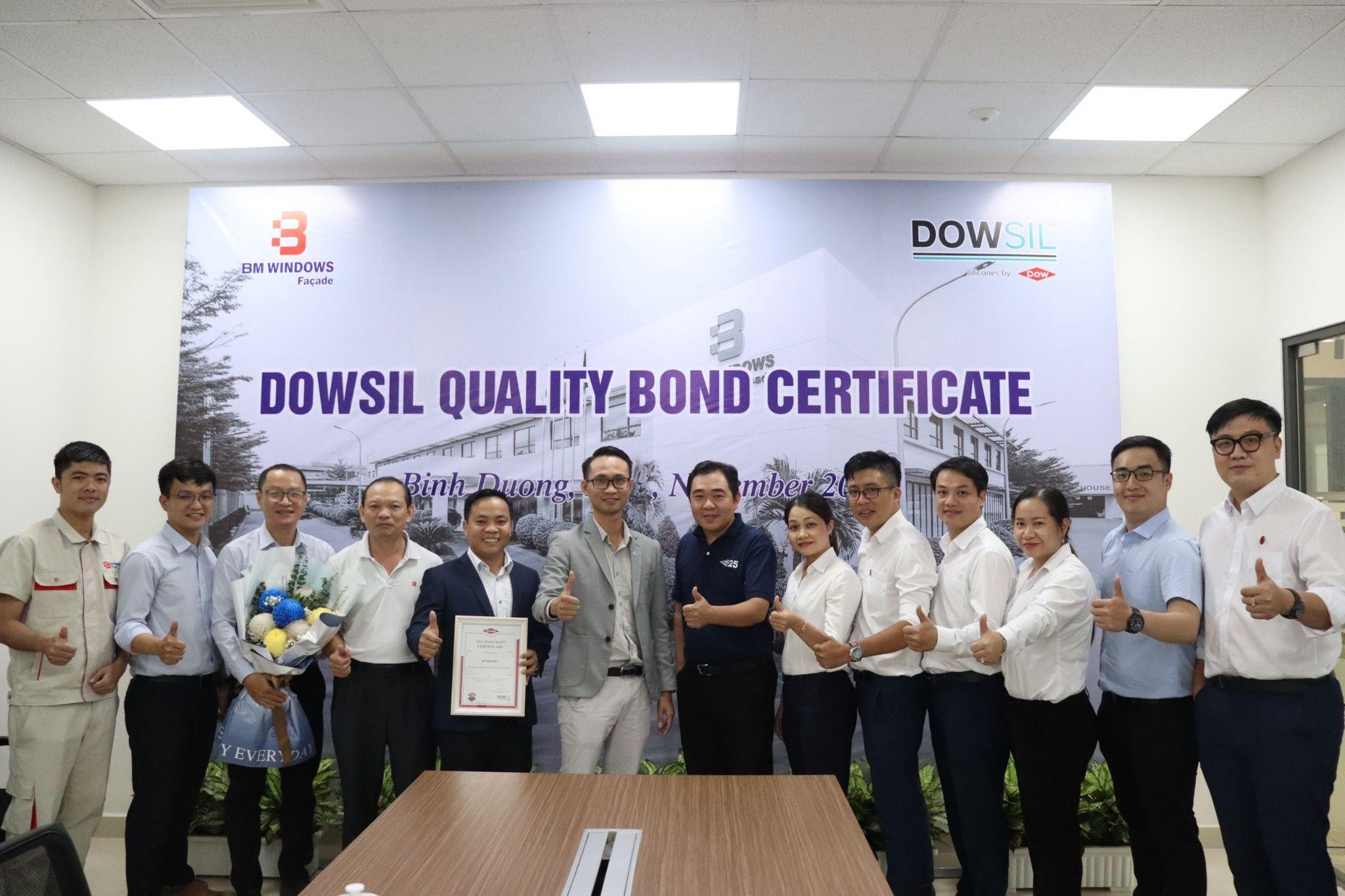 Trong ngành xây dựng, Dow Quality Bond được coi là “bảo chứng” về hệ thống kiểm soát chất lượng, hiệu suất, an toàn, độ bền trong sản xuất và ứng dụng silicone trên toàn cầu. Để đạt được chứng nhận này, các nhà thi công mặt dựng như BM Windows phải vượt qua tất cả những đánh giá nghiêm ngặt về chất lượng, quy trình vận hành, sản xuất… tại nhà máy, đáp ứng các tiêu chuẩn của Tập đoàn hóa chất Dow Chemical, nhằm thực hiện cam kết hợp tác đảm bảo chất lượng xuyên suốt của dự án. Bên cạnh đó, chứng nhận Dow Quality Bond còn là cam kết đồng hành của Tập đoàn Dow Chemical với BM Windows về chất lượng thi công xuyên suốt quá trình triển khai dự án.