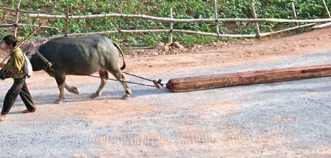 | Một phách gỗ lim đi qua vườn nhà dân ở miền tây huyện Lệ Thuỷ. |