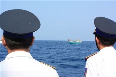 | Cảnh sát biển Việt Nam dõi theo ngư dân. |