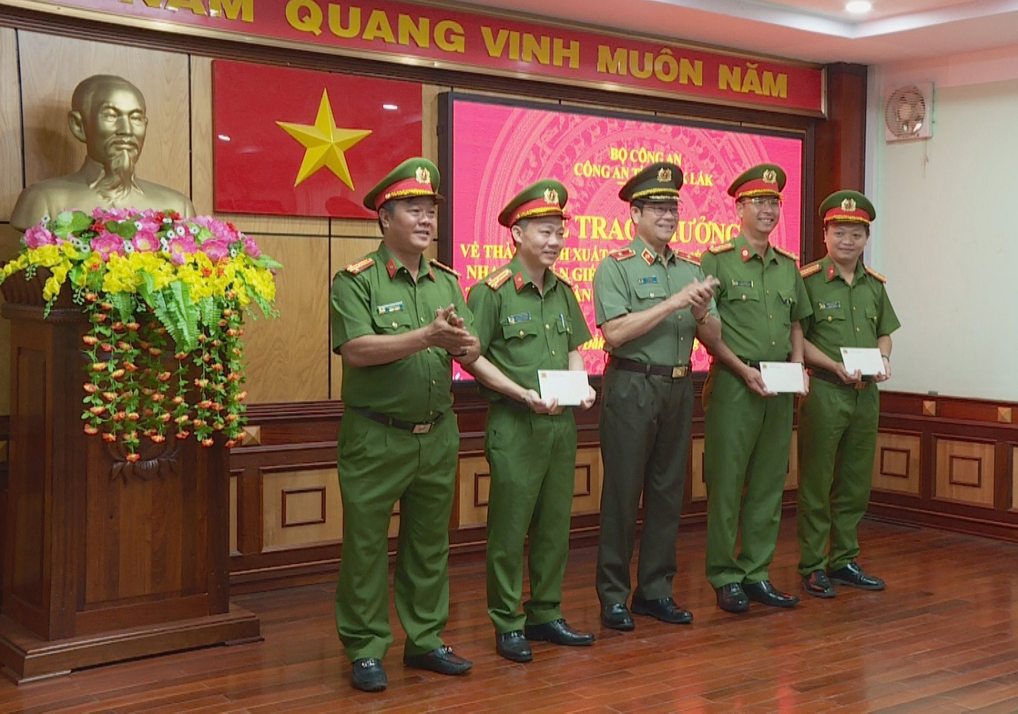 Sáng 10/10, Công an tỉnh Đắk Lắk đã tổ chức trao thưởng đột xuất cho 3 đơn vị tham gia phá nhanh vụ trọng án xảy ra trên địa bàn TP Buôn Ma Thuột, bắt giữ hung thủ sau 5 giờ gây án.