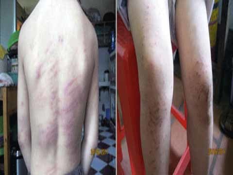 Những thương tích trên người cháu Ngân do bị “tra tấn” bằng đòn roi và vỏ sầu riêng (ảnh Báo Đồng Nai) |