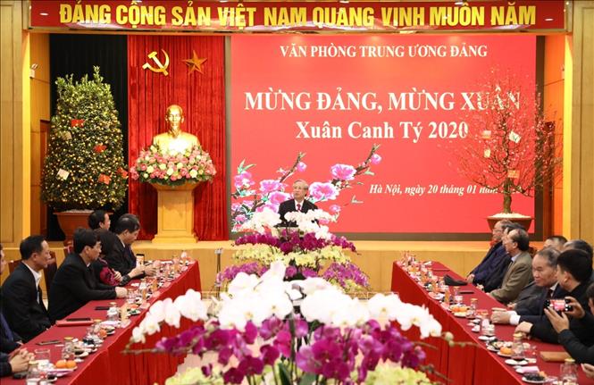 Nhân dịp Tết cổ truyền dân tộc Canh Tý, thay mặt lãnh đạo Đảng, Nhà nước, Thường trực Ban Bí thư chúc các lãnh đạo, cán bộ, công chức, viên chức và người lao động của Văn phòng Trung ương Đảng và gia đình mạnh khỏe, an khang, hạnh phúc; chúc Văn phòng Trung ương Đảng một năm mới với khí thế mới, quyết tâm mới, hoàn thành xuất sắc nhiệm vụ được giao.