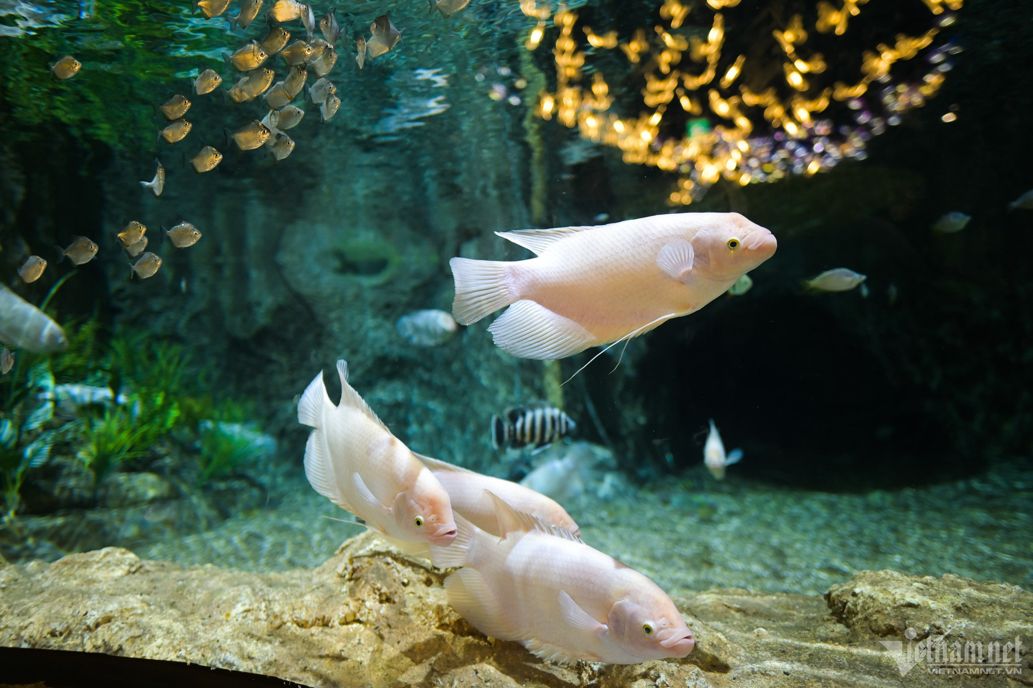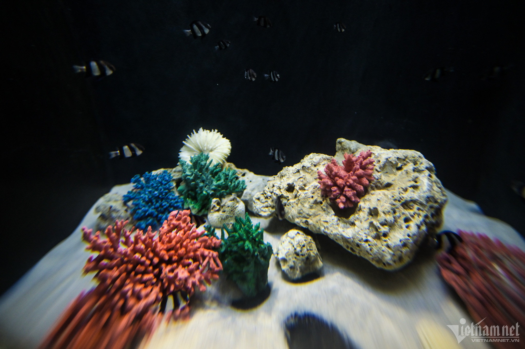 Bên trong rất nhiều bể chứa, các loại cây là nơi trú ngụ cho cá cũng chỉ là cây giả, hoa nhựa... tạo nên cảm giác không thực sự gần gũi thiên nhiên.