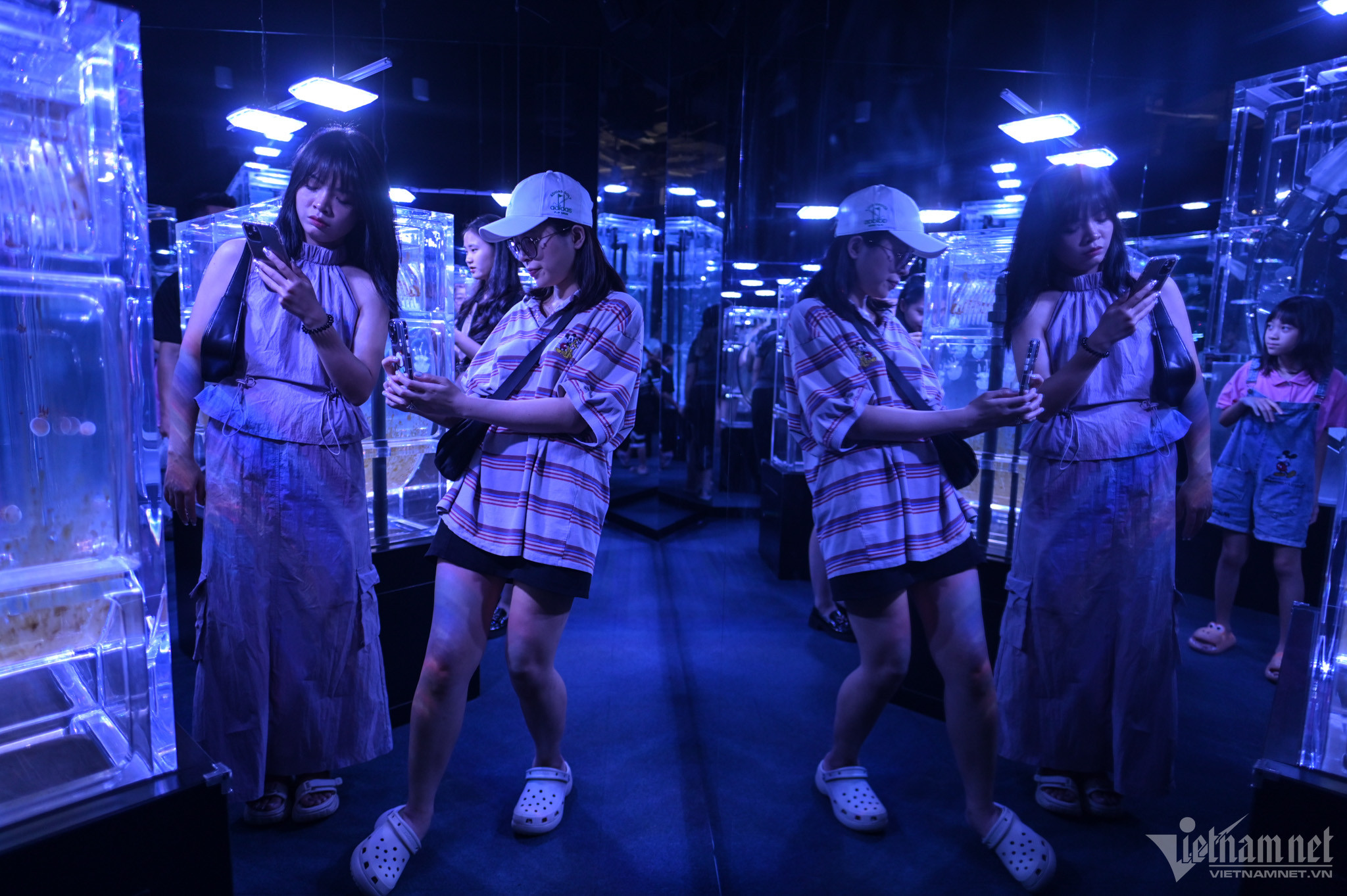 Khu vực thu hút đông du khách nhất là phòng trưng bày sứa với thiết kế tường gương, tạo không gian trong suốt, mới lạ.