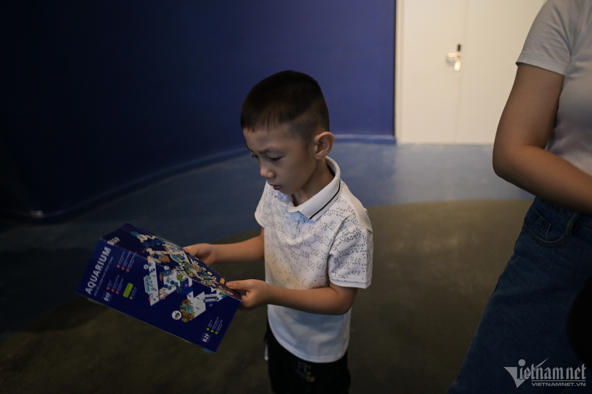 Tiến Đạt cùng mẹ từng đến thủy cung tại Hạ Long, Đà Nẵng nên có kinh nghiệm trong việc quan sát các loài động vật. Cậu bé loay hoay kiểm tra bản đồ vì một số loài động vật yêu thích chưa thấy có mặt tại đây.